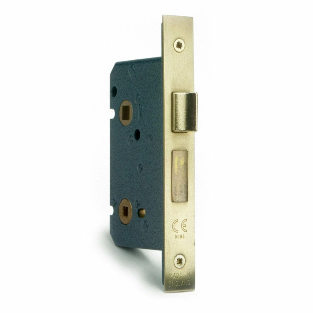 The toilet door lock (3501) has the same high security case as above and is supplied with a striker plate. The lock operates with 8mm spindles and with 5mm turn and release furniture to lock. The latchbolt is reversible to suit left or right opening doors.