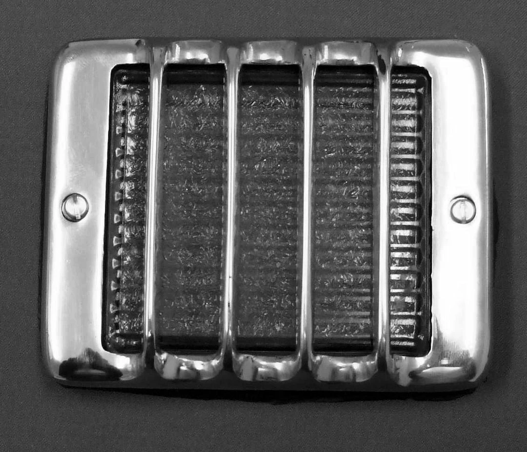 Guarded step light with heavy ribbed glass, covered by a cast brass guard – polished or chrome finish.