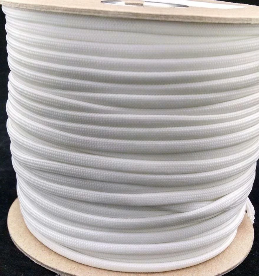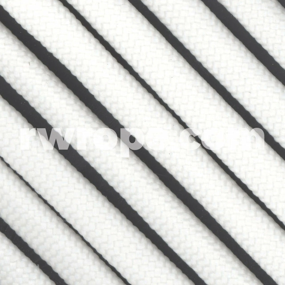 ParaGlow has a Polypropylene cover and the same core as the 550 Type III Commercial Parachute Cord (7-2ply Nylon Strands). Tensile strength is approx. 400 lbs.
