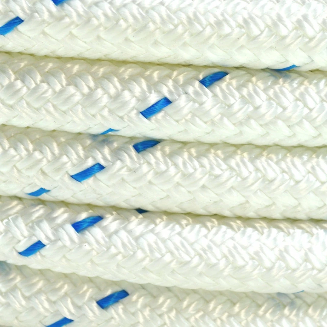 Novablue is our premium double braided polyester rope designed for general marine, industrial, and commercial use where low elongation, high strength, and abrasion resistance are required. Constructed from the highest quality UV stabilized yarns, Novablue’s balanced core and cover construction insures easy splicing. It can be easily identified by a single blue tracer in the cover. Diameters over 1″ are solid white.