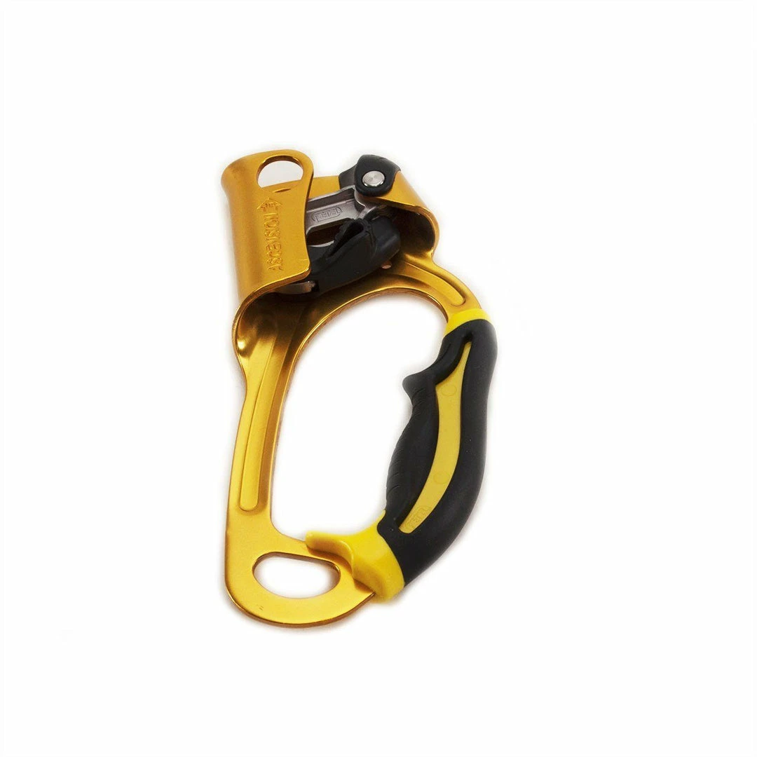 Handled rope clamp for rope ascents, the ASCENSION features an overmolded grip and ergonomic upper part for a comfortable and powerful grip when pulling with one or two hands. The ASCENSION handled rope clamp has a wide lower hole for easily attaching two carabiners for a lanyard and footloop.