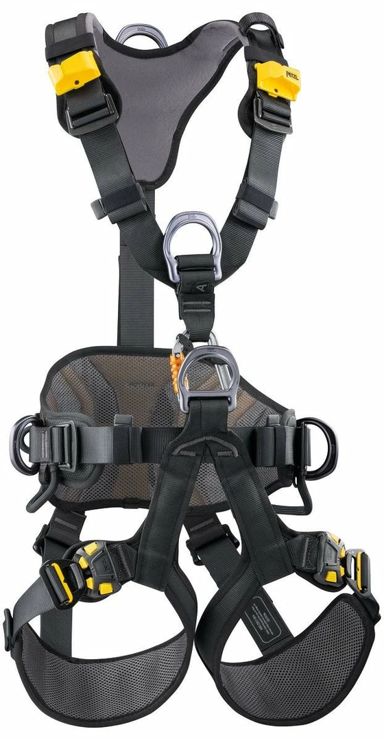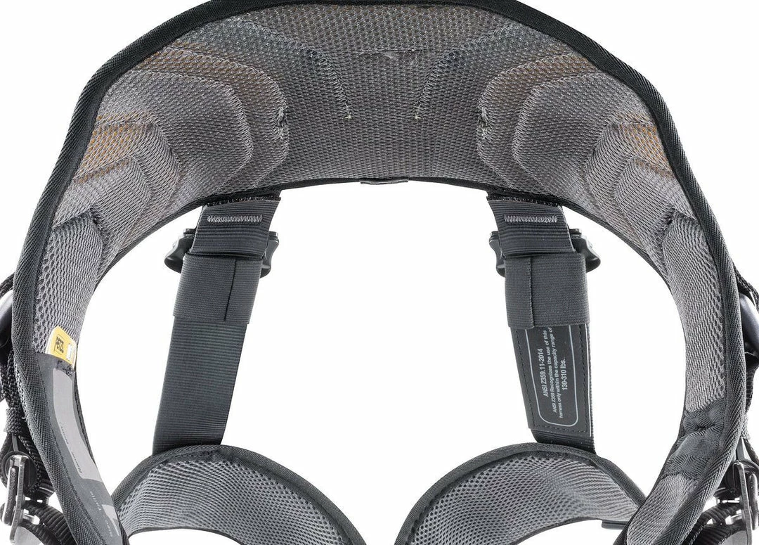 – four slots for TOOLBAG tool pouch - The international version has a fall indicator: a red strap appears on the dorsal attachment point after a fall to indicate that the harness should be retired