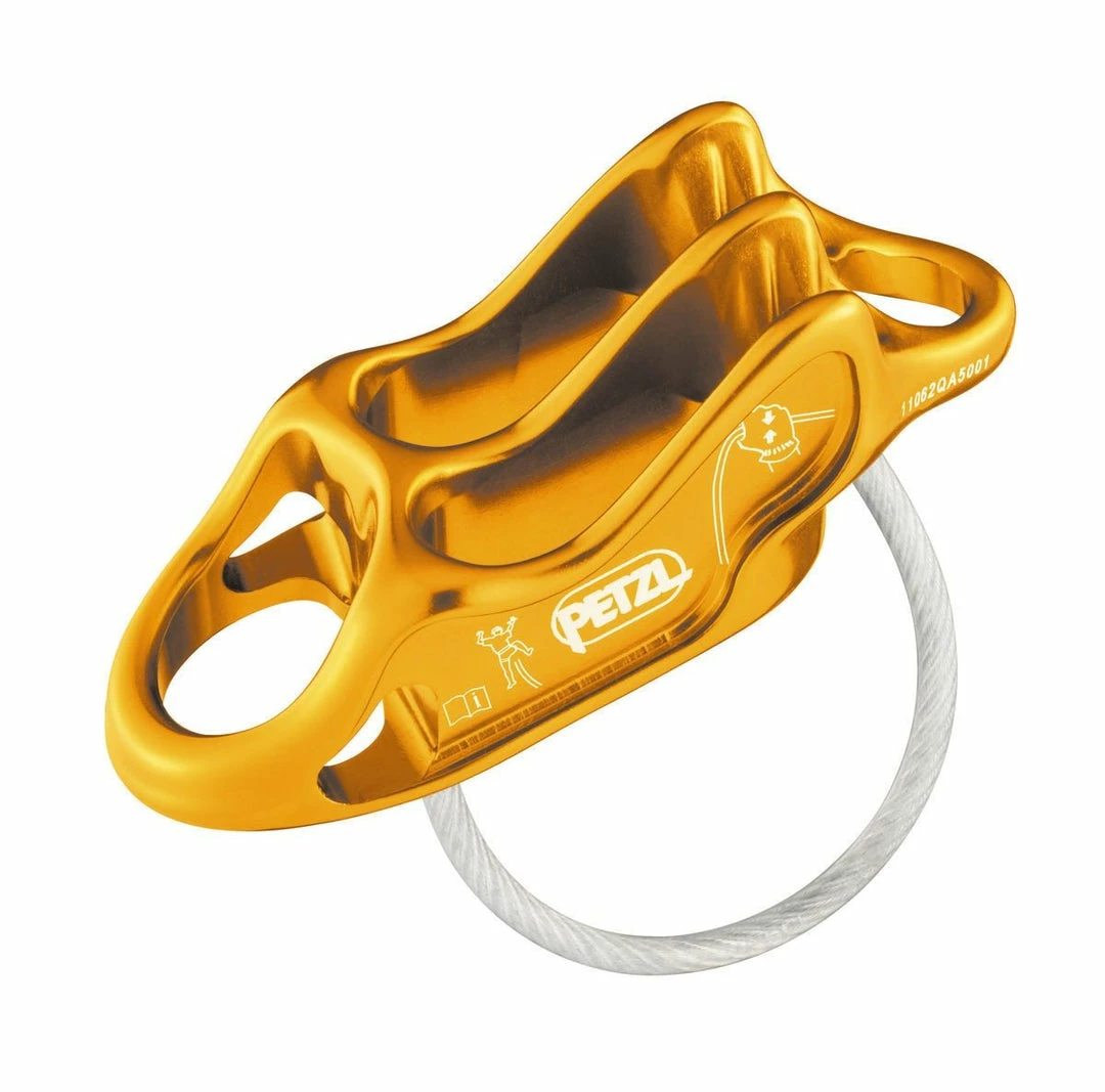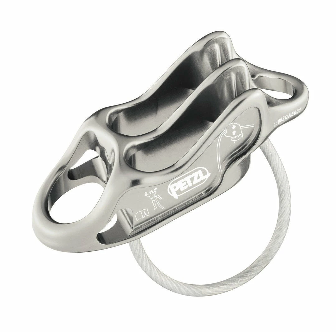 This belay/rappel device is lightweight and easy to use. V-shaped friction channels, with asymmetrical side grooves, adapt the rope friction for better control (braking adapted to half, twin and single dynamic ropes). Reverso mode for belaying one or two seconds.