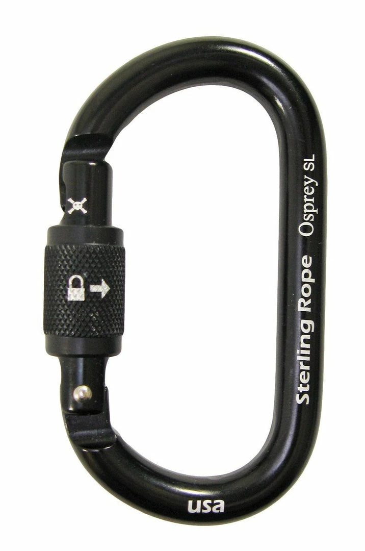 The Osprey SL is a screwgate, oval-shaped carabiner. Crafted from high strength 7075-T6 aluminum, the Osprey is strong and lightweight. The oval-shape helps center loads on the carabiner and is a good choice for aid climbing and high angle rescue.